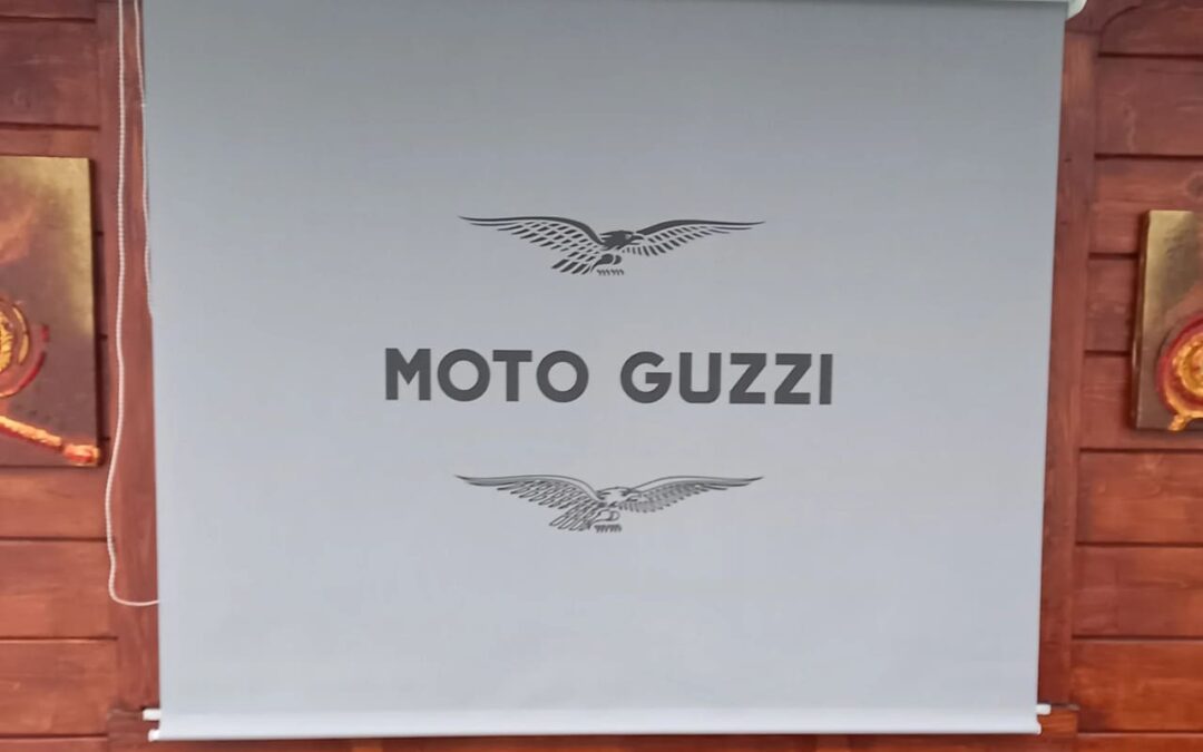 Hier ein ganz besonderer Kundenwunsch; das Rollo mit Logodruck – MOTO GUZZI – Vom Entwurf bis zur Umsetzung gestalten wir