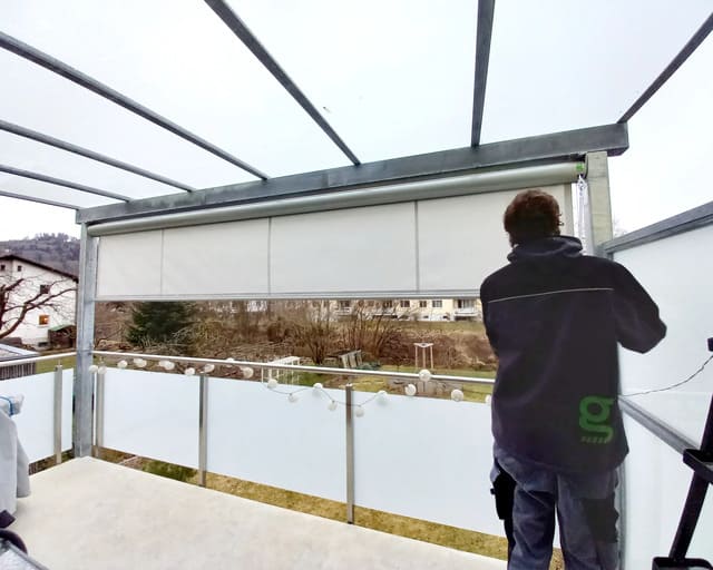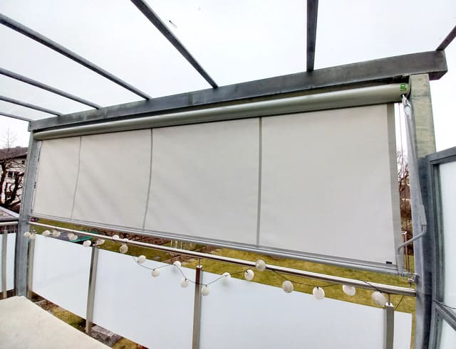 Montage Universal – das passende Produkt immer dann, wenn eine schlanke Senkrechtbeschattung sowohl als Sicht, wie auch als Blendschutz benötigt wird.