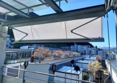 Das tolle an Kassettenmarkisen: auch bei Wetterfronten bleibt der Storenstoff in eingezogenem Zustand dank der geschlossenen Bauweise geschützt, was die Lebensdauer der Store verlängert. Ein weiteres Plus: die Store ist formschön und modern!